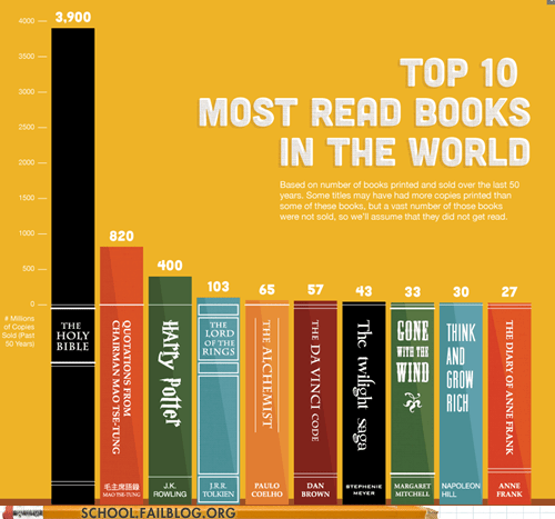 People claim to have read books (1, 2, 3, 4) and watched movies they haven’t in order to appear more intelligent. From the new list that I will discuss below, you have to question who they are trying to impress by claiming to have read Dan Brown and Stieg Larsson.