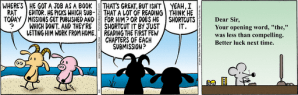 On the other side of the great divide, all the cool kids authors are self-publishing. People like Konrath, Eisler, Mayer, some guy named John Locke, are doing well out of self-publishing and doing all the work themselves (or hire for service). Clearly all authors should be grabbing their manuscripts and uploading them now.